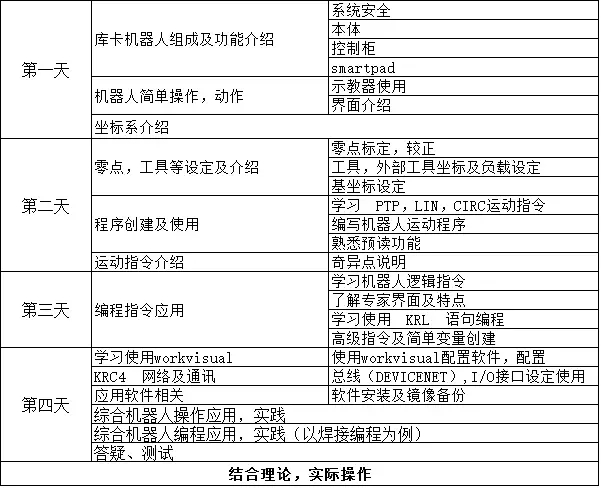 本次KUKA機(jī)器人培訓(xùn)班課程安排如下: