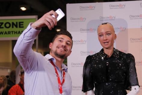 機器人明星“索菲亞”優雅亮相 教粉絲拍照擺造型